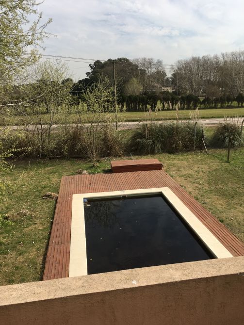 piscina de 9 x 4 con filtro y borde atermico. deck de madera