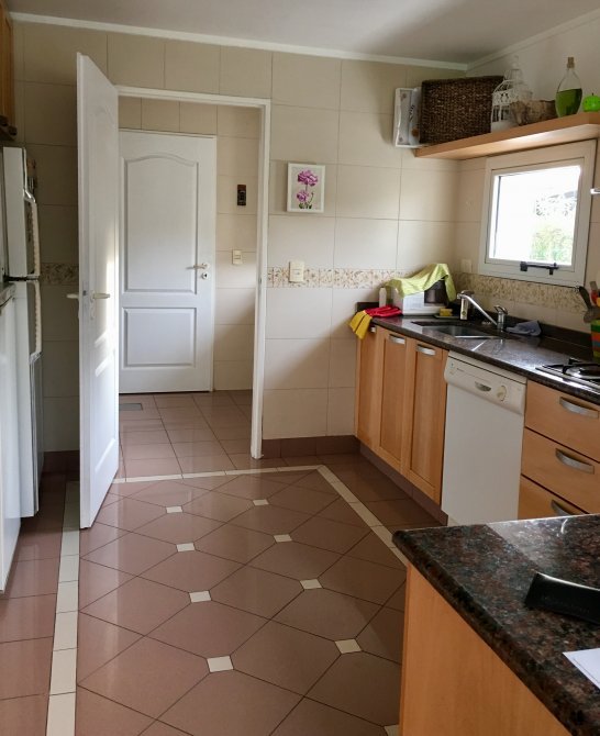 cocina comedor diario con despensa y lavadero que se conecta con la cochera doble