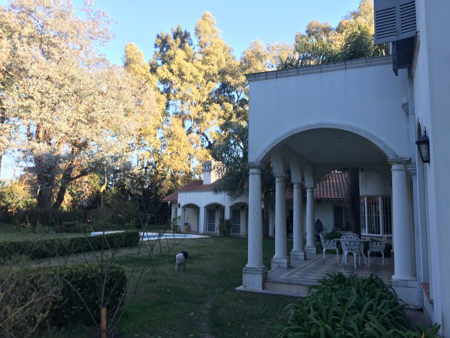 PLANTA BAJA : doble puerta de madera maciza de estilo, pisos en porcelanatos amplio living comedor con ventanales al parque y hogar a leña, doble circulación hacia la cocina y garage cubierto para varios autos con portón automatizado.-