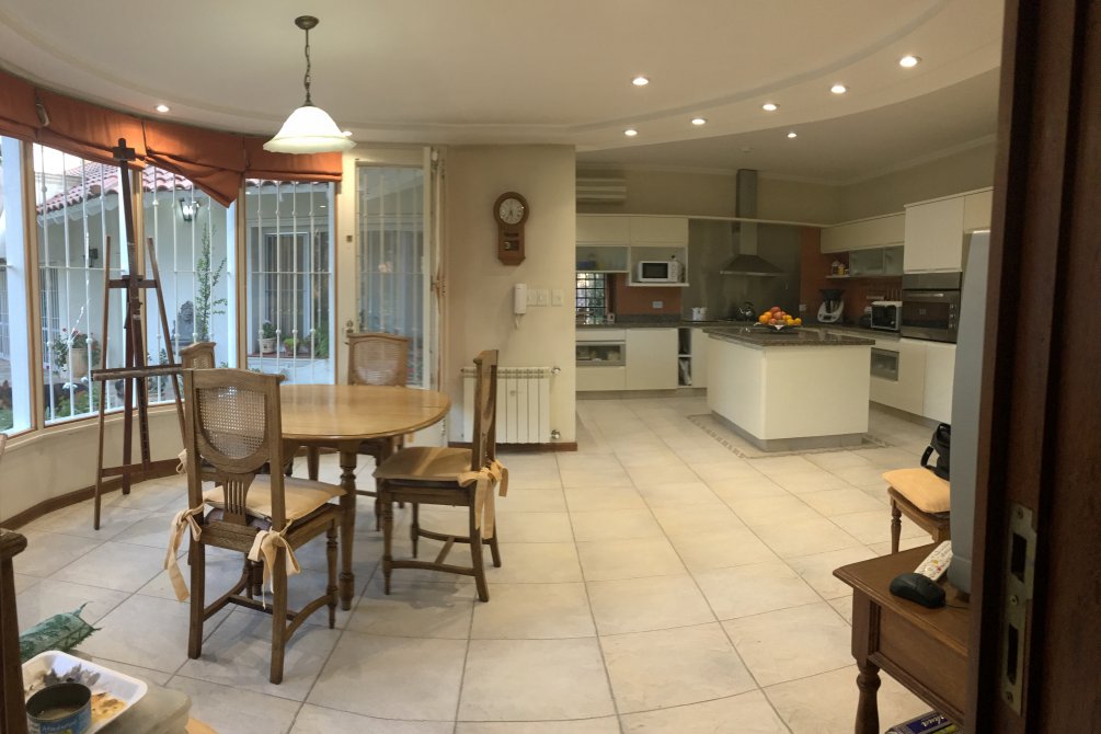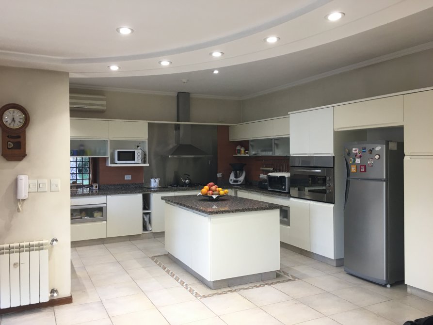 Quincho cerrado amplio y luminoso con galería semicubierta, parrilla y pasaplatos, baño exterior para el quincho