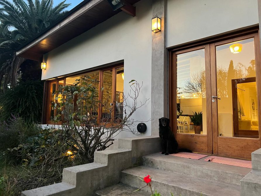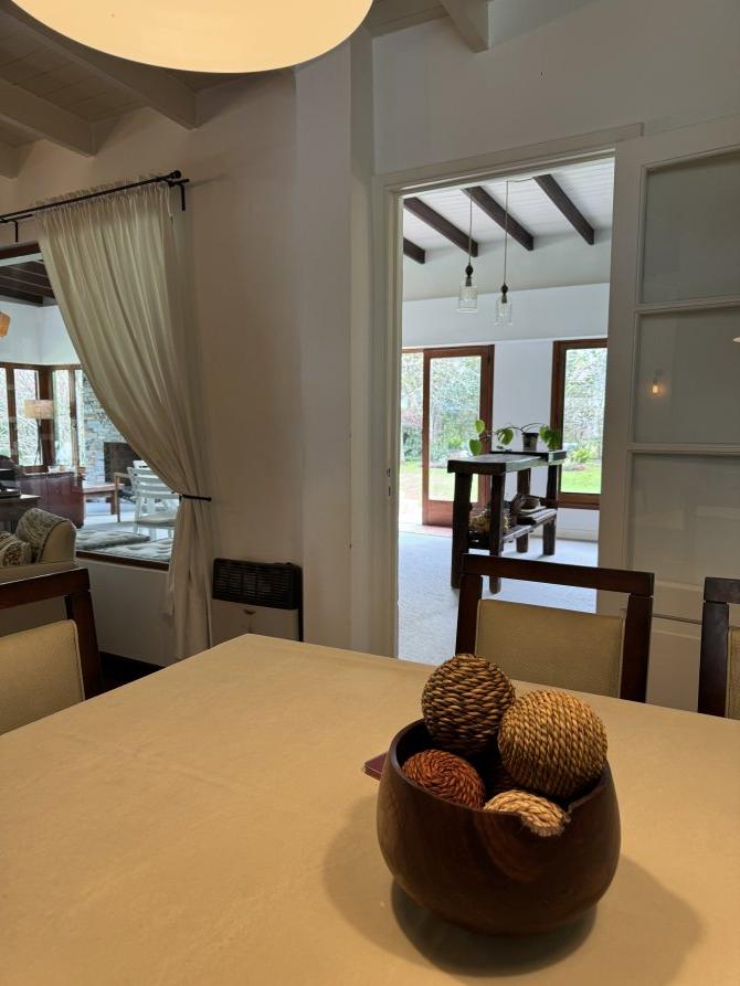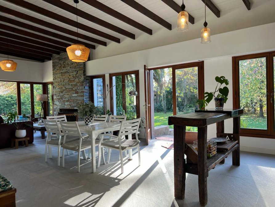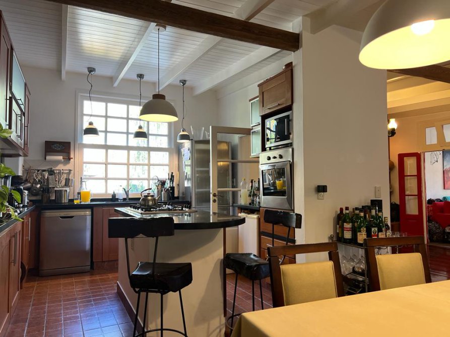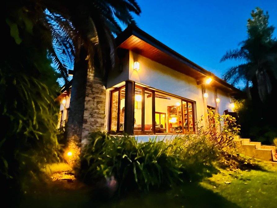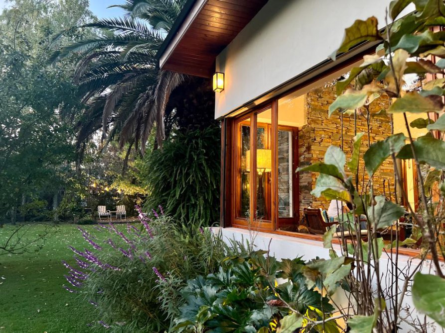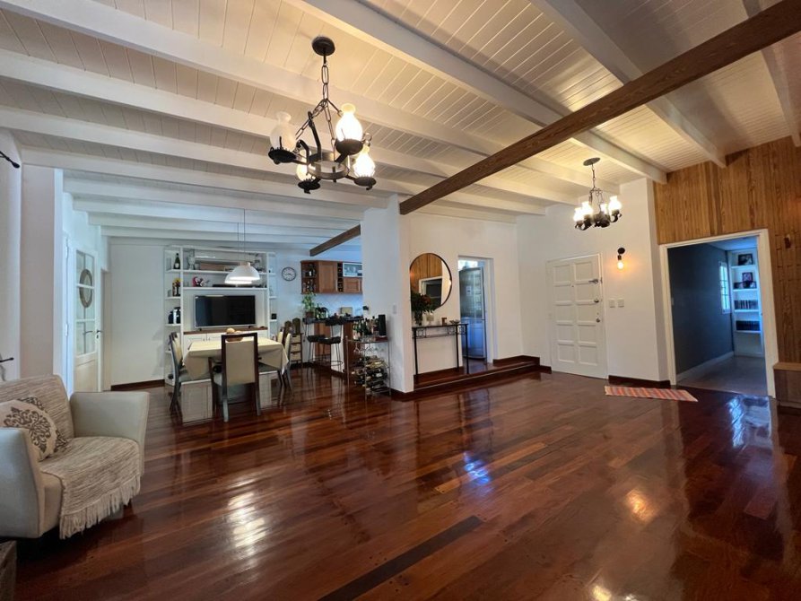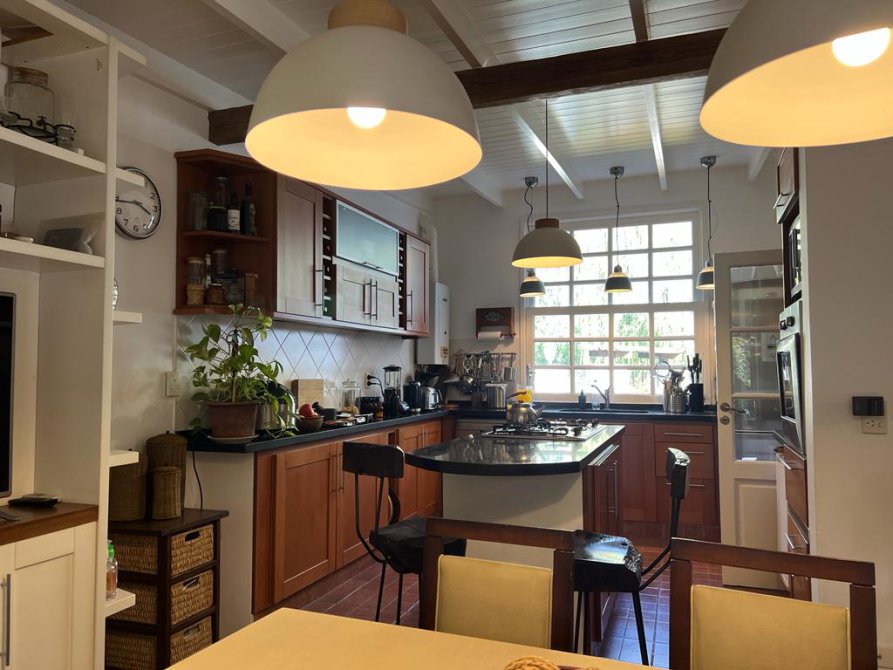 La casa cuenta con moderna cocina, comedor estar, lavadero, 3 dormitorios (uno en suite), 3 baños, sala de juegos, escritorio (posible cuarto dormitorio), área de quincho cerrado integrado a la casa con hogar a leña, sector de parrilla, cochera para 2 autos, portón automatizado, piscina climatizada e iluminada con filtro.