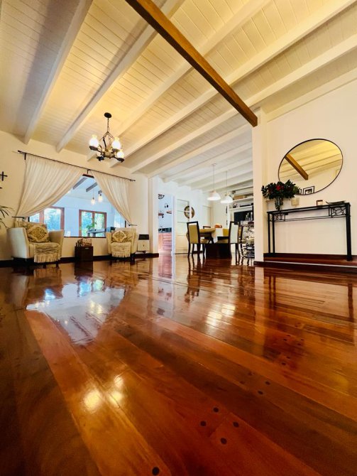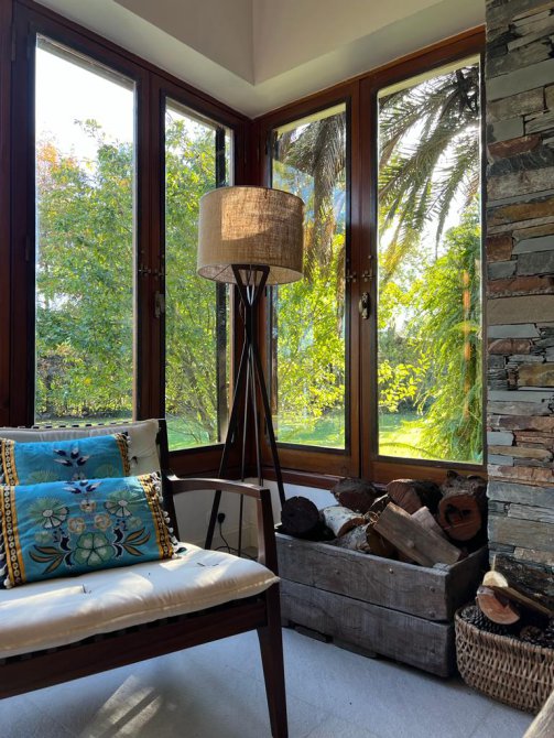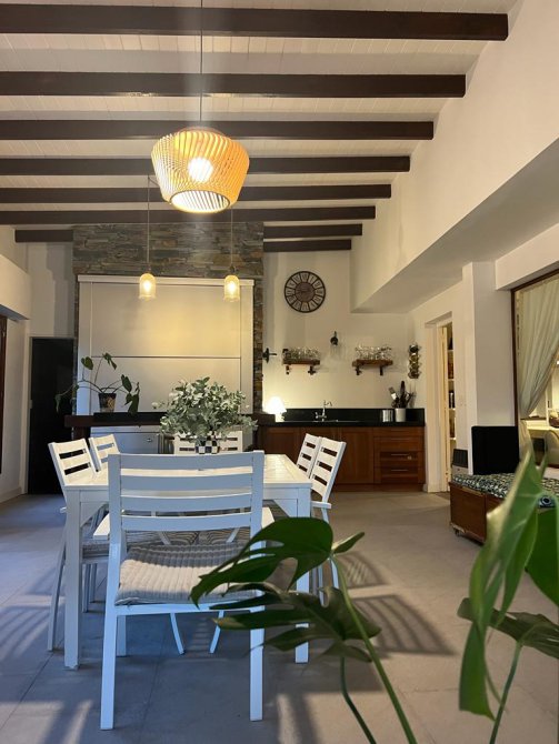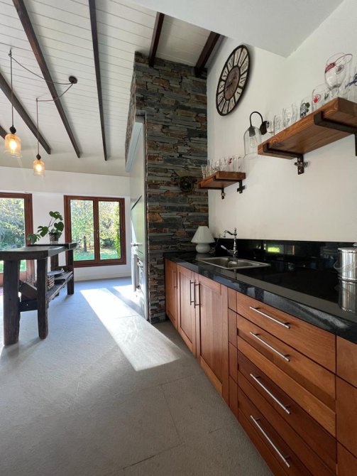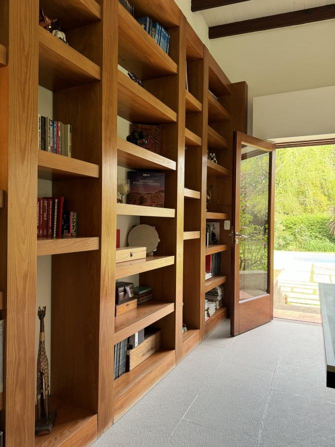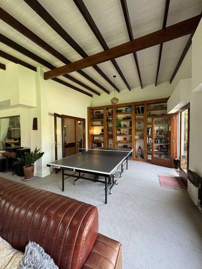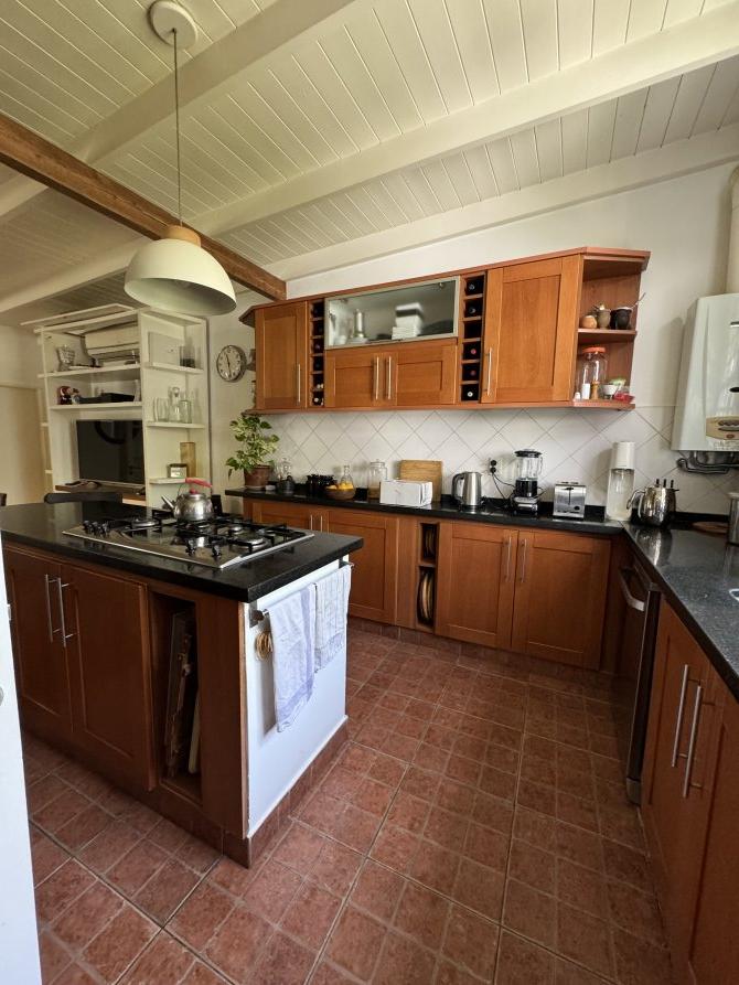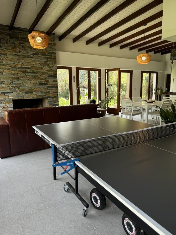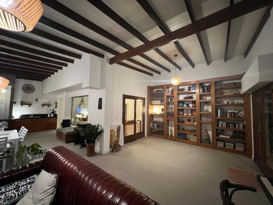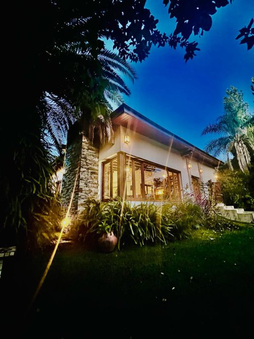 La casa cuenta con moderna cocina, comedor estar, lavadero, 3 dormitorios (uno en suite), 3 baños, sala de juegos, escritorio (posible cuarto dormitorio), área de quincho cerrado integrado a la casa con hogar a leña, sector de parrilla, cochera para 2 autos, portón automatizado, piscina climatizada e iluminada con filtro.