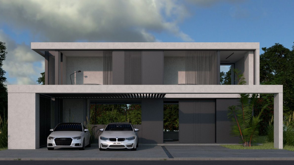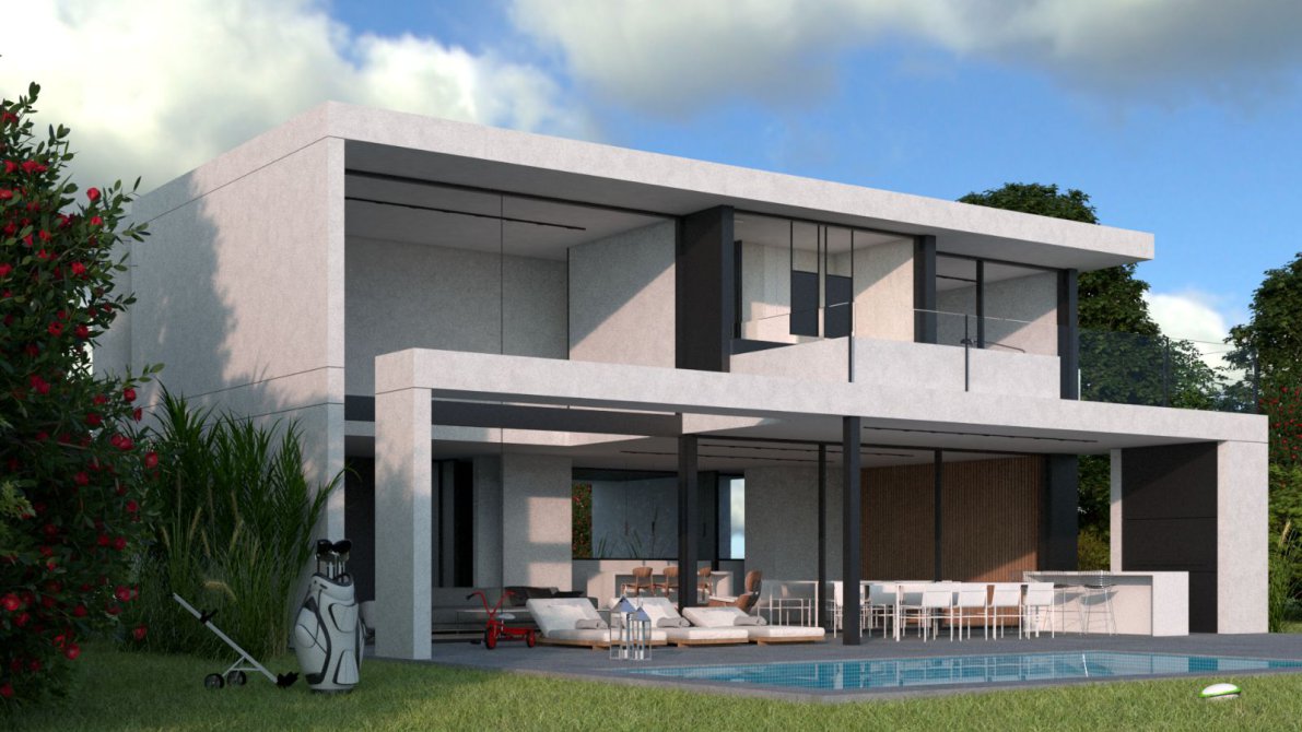 Espectacular proyecto de casa de diseño único con vista a la cancha de Golf , cuenta con cochera semicubierta para dos autos y espacio de guardado deportivo , ingreso principal a la planta baja que se compone de toilette en el recibidor , amplio estar comedor con hogar , cocina integrada con barra y cómodo lavadero independiente con salida al exterior ; amplios ventanales corredizos hacia el jardín con galería semicubierta , parrilla y barra.