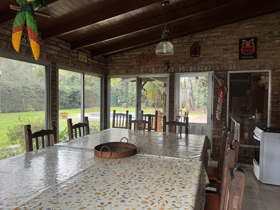 Quincho cerrado con area de cocina y parrilla