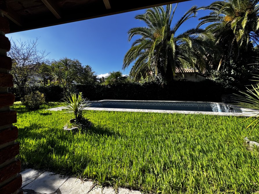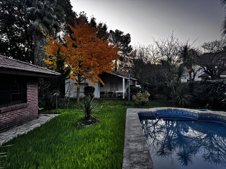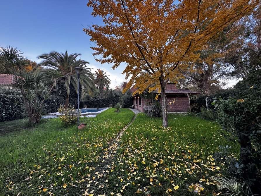 Hermoso jardín arbolado, con espacio verde libre y entorno natural