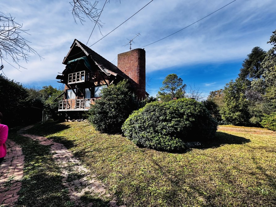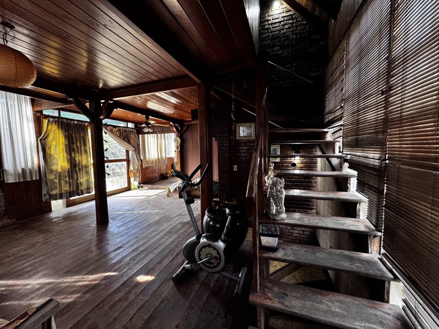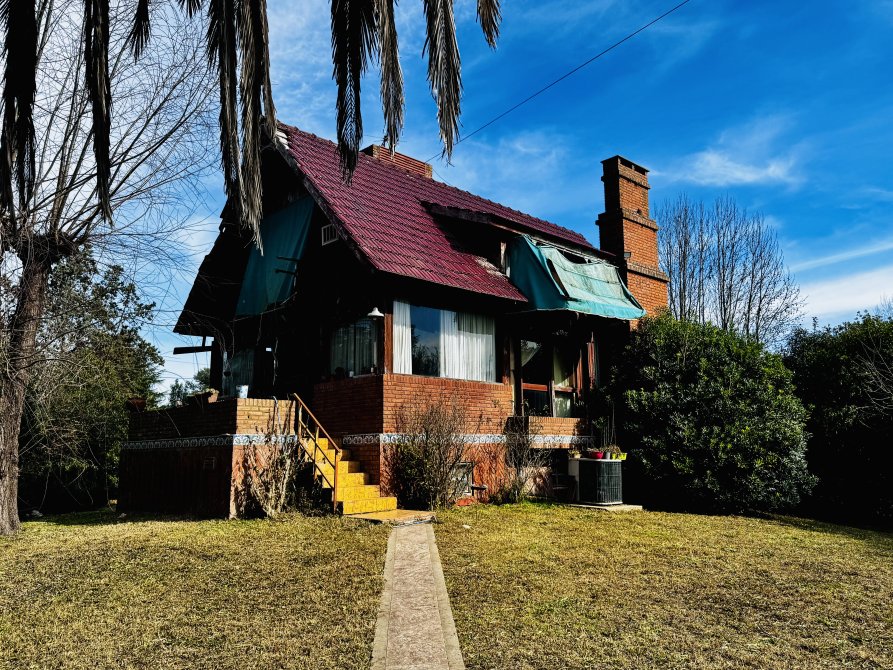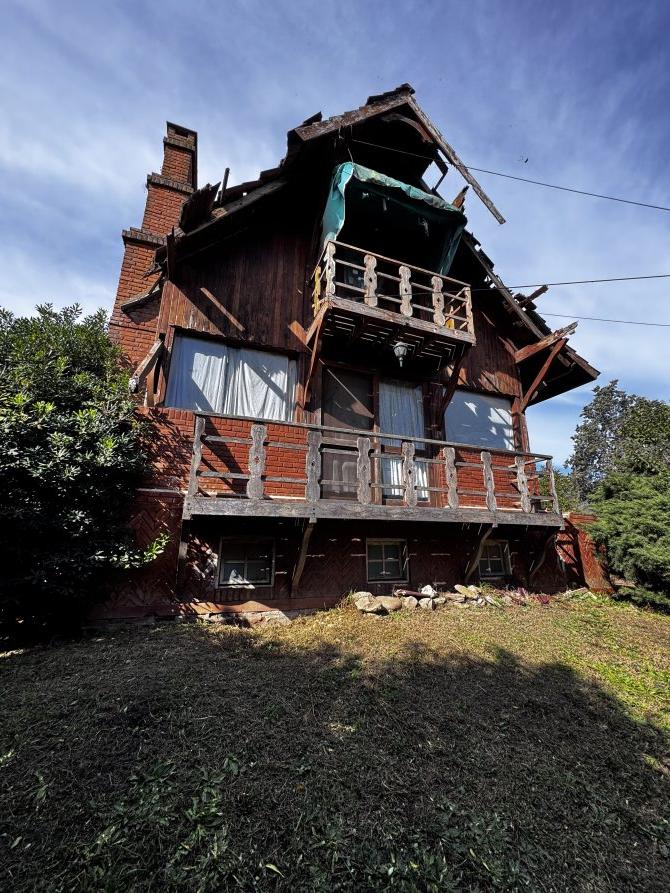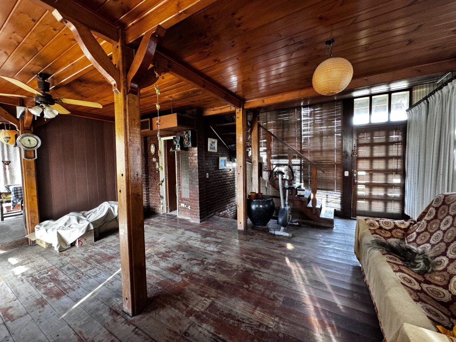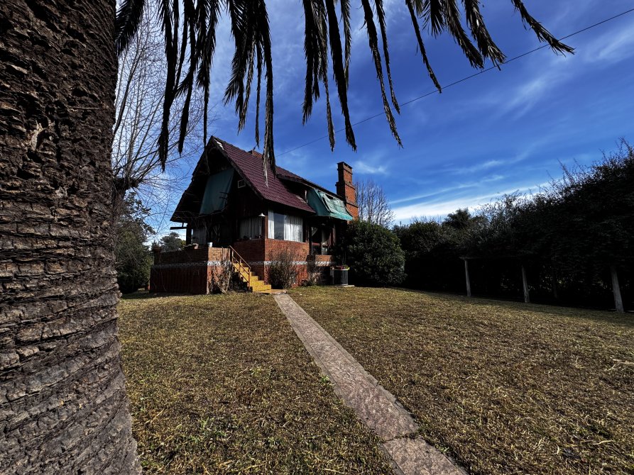 La casa principal estilo cabaña requiere mejoras generales, pero presenta un diseño sólido y gran potencial.