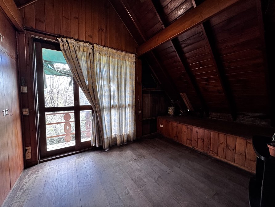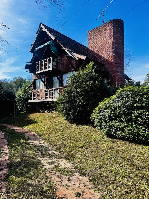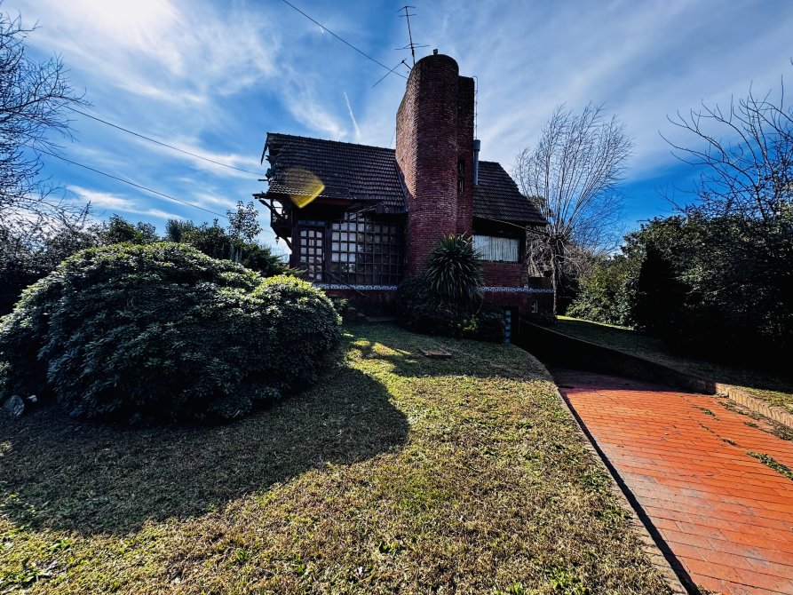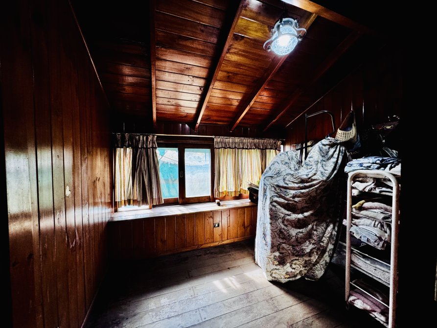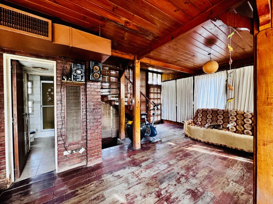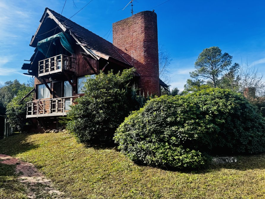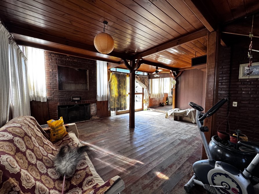 La casa principal estilo cabaña requiere mejoras generales, pero presenta un diseño sólido y gran potencial.