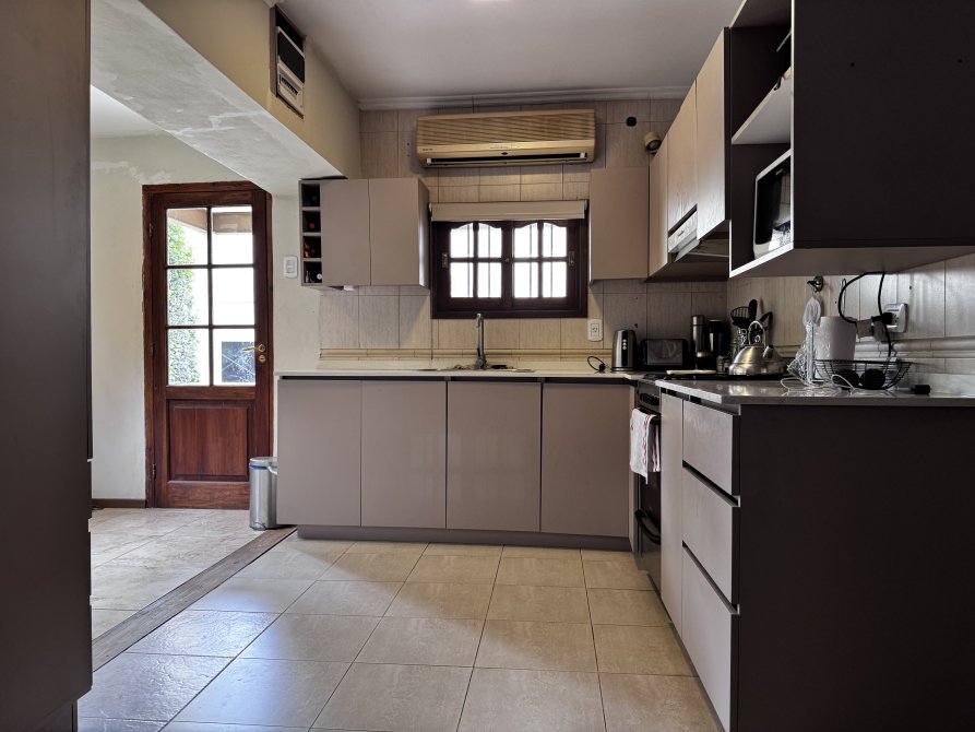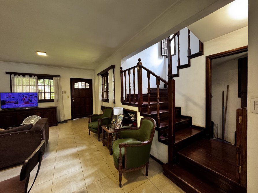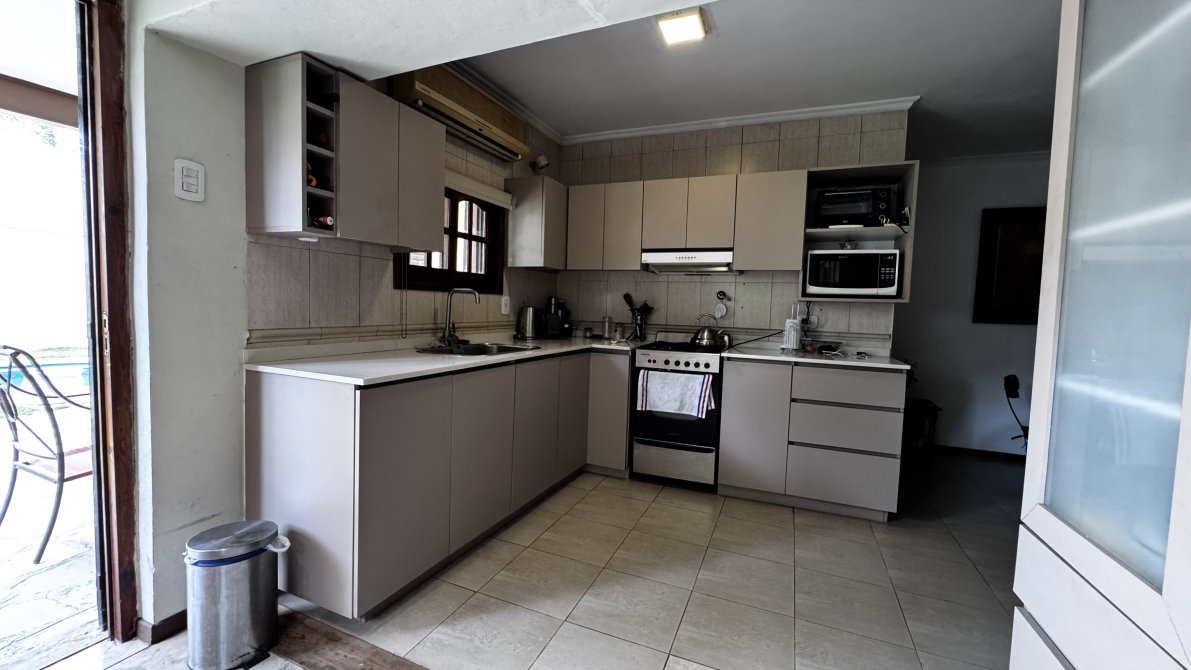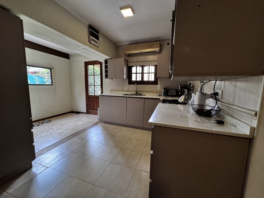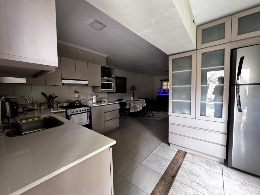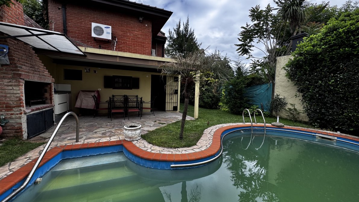 En el exterior, la casa ofrece una galería con parrilla, cochera para dos autos y una pileta tipo riñón de 8 x 4 m con filtro, ideal para disfrutar en familia.