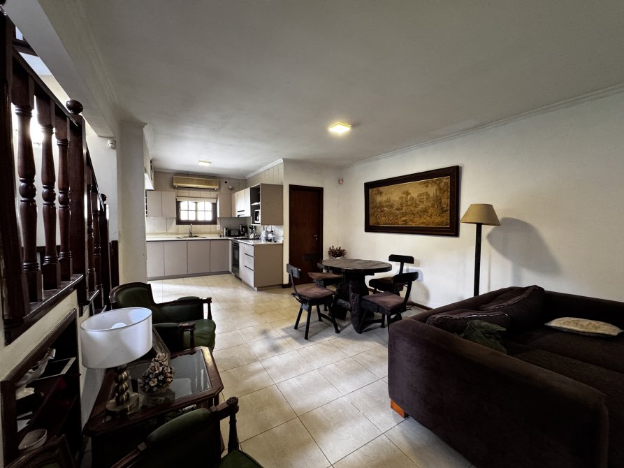 En planta baja se dispone un luminoso estar comedor, baño completo, cocina con comedor diario y habitación de servicio.