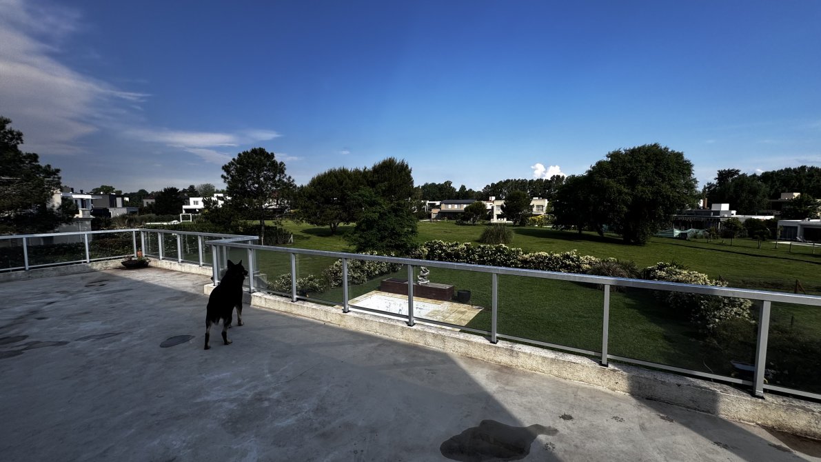 Amplia terraza con vista al pulmon verde y escalera que conecta con el parque