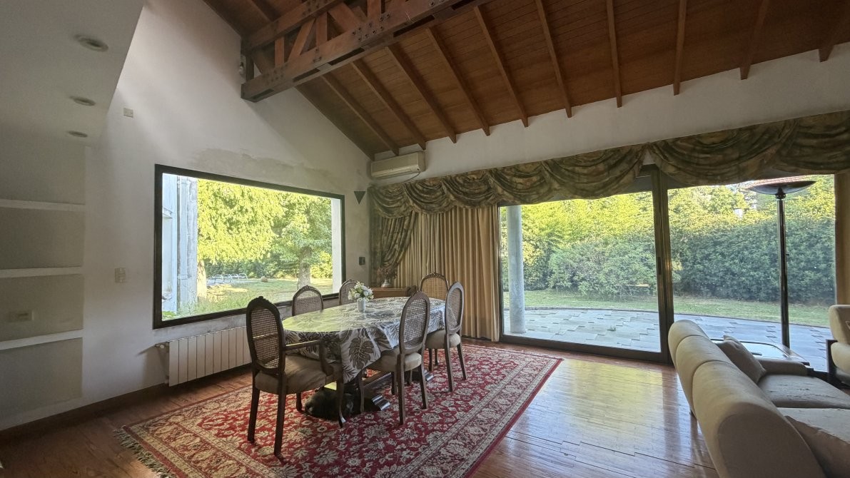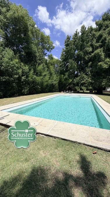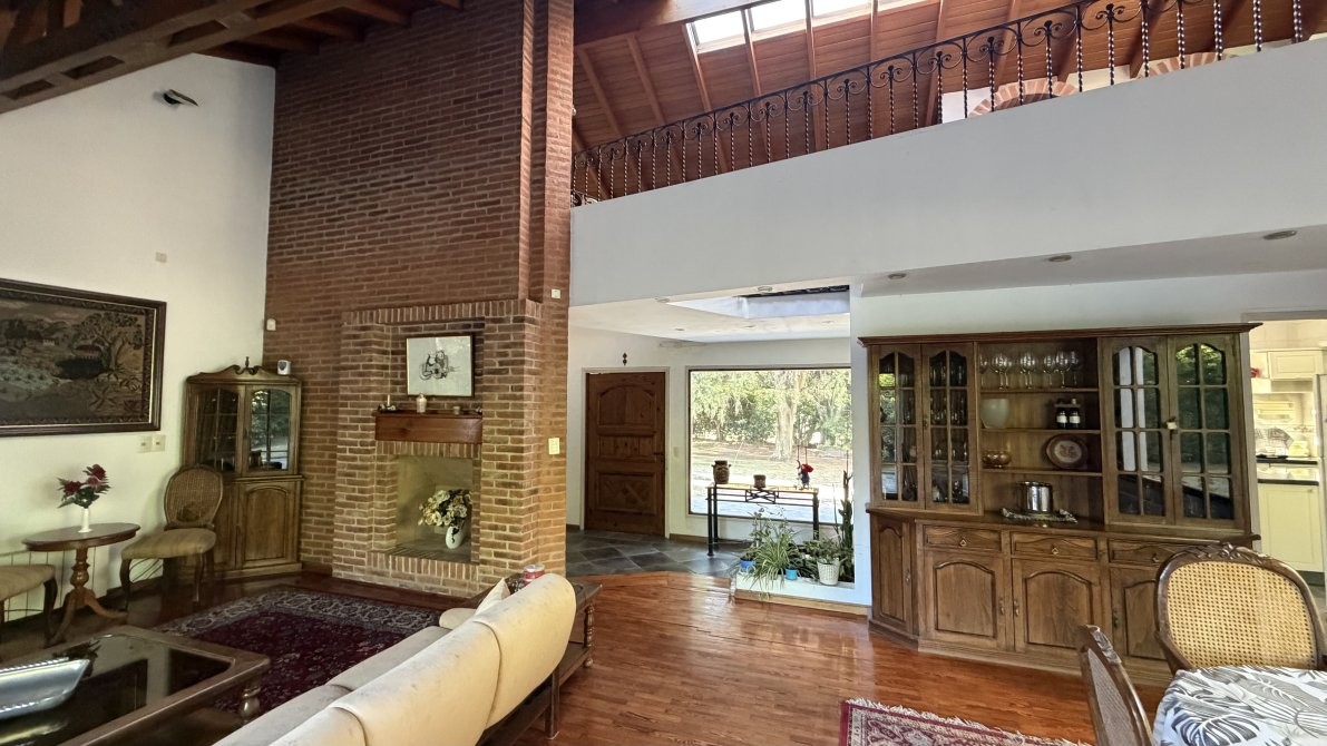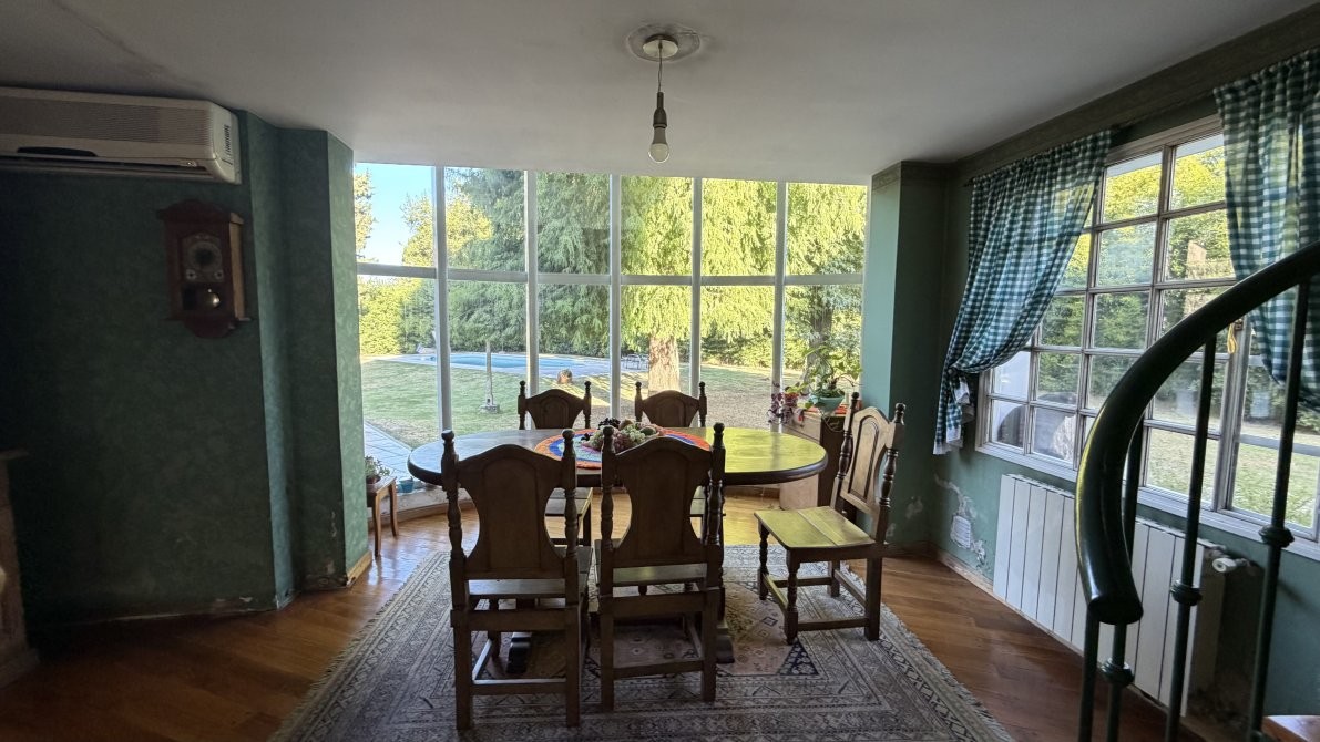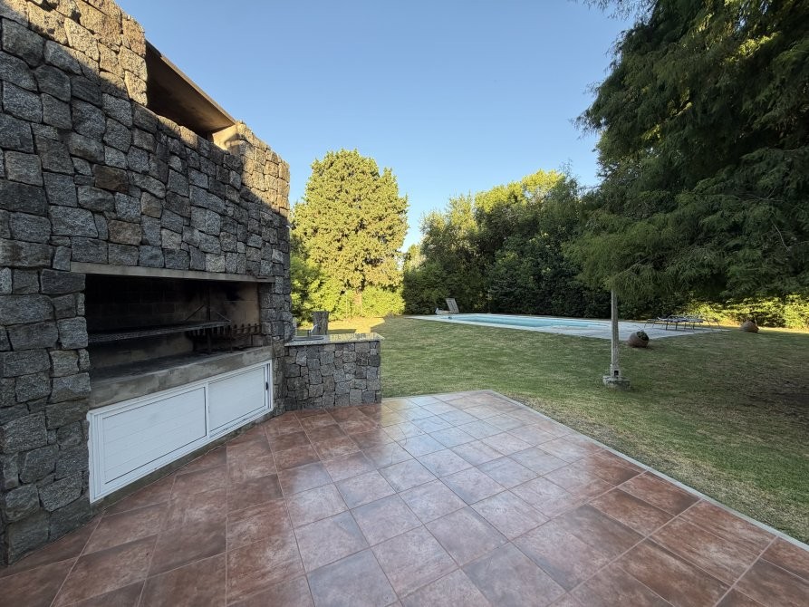 En el exterior, la casa ofrece un sector de parrilla ideal para reuniones y una gran piscina con sistema de filtrado, rodeada por un extenso parque que garantiza privacidad y contacto pleno con la naturaleza.