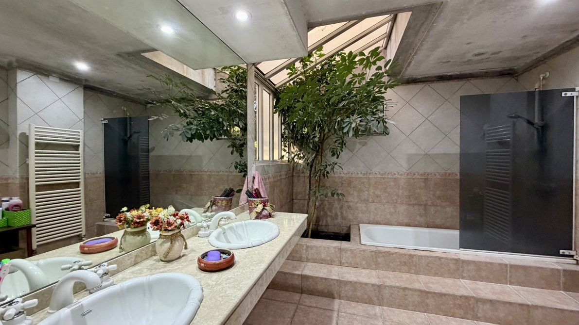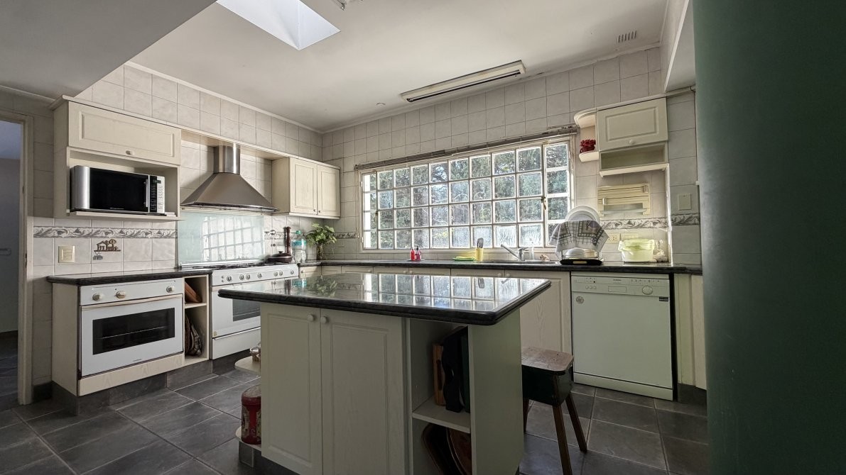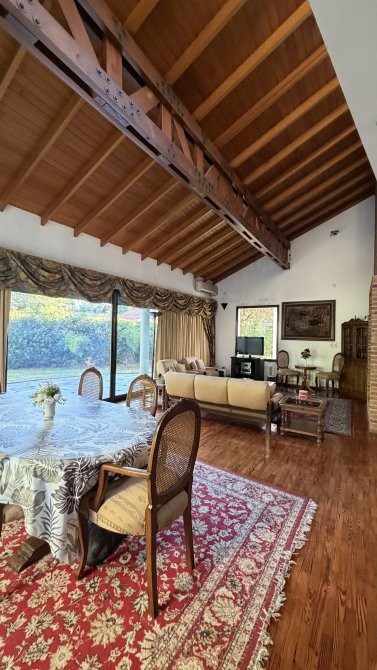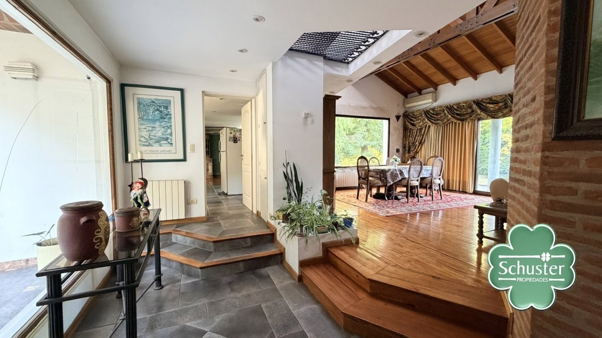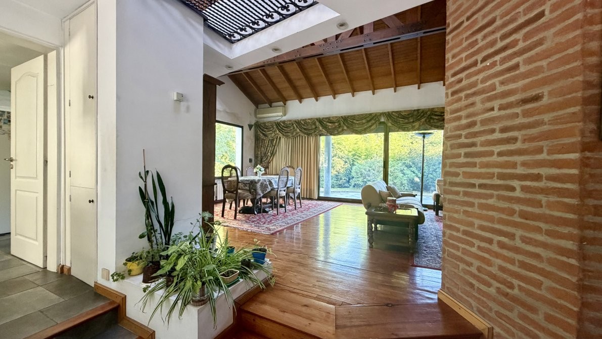 En el exterior, la casa ofrece un sector de parrilla ideal para reuniones y una gran piscina con sistema de filtrado, rodeada por un extenso parque que garantiza privacidad y contacto pleno con la naturaleza.