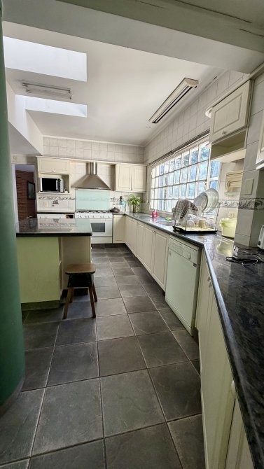 Este ambiente se integra a una cocina de generosas dimensiones con isla, conectada a un cómodo comedor diario con gran ventanal y vistas abiertas al parque. Completa esta área lavadero independiente, despensa y cochera cubierta para dos autos.
