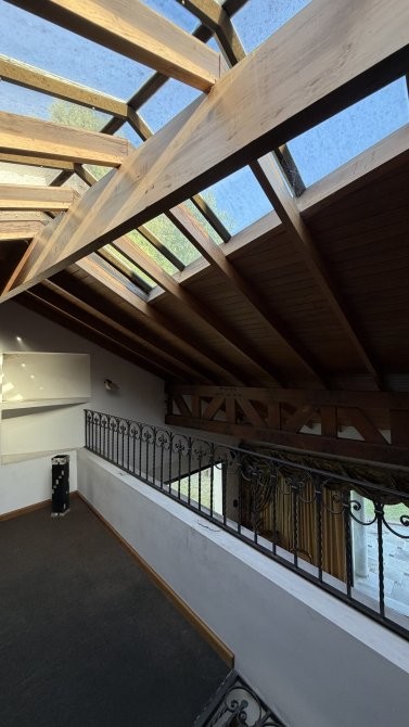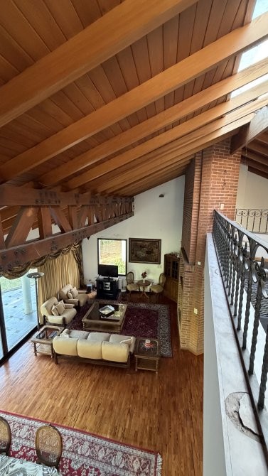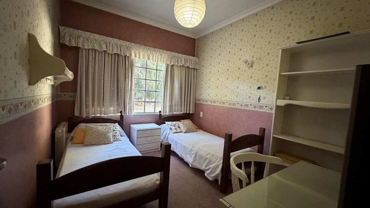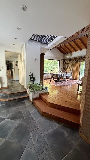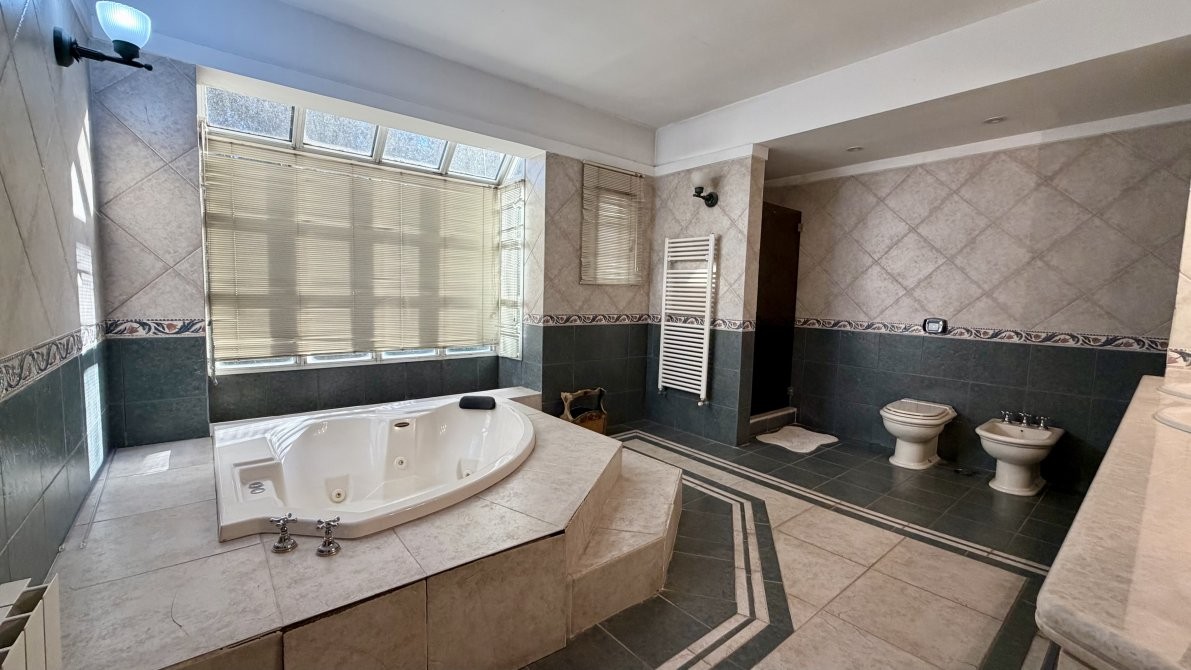 En otra ala de la casa se desarrolla un estar íntimo, que distribuye el acceso a cuatro dormitorios, dos de ellos en suite. La suite principal cuenta con un amplio baño con hidromasaje, brindando un espacio de relax y confort.