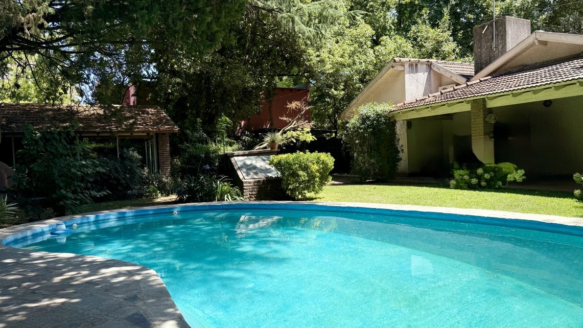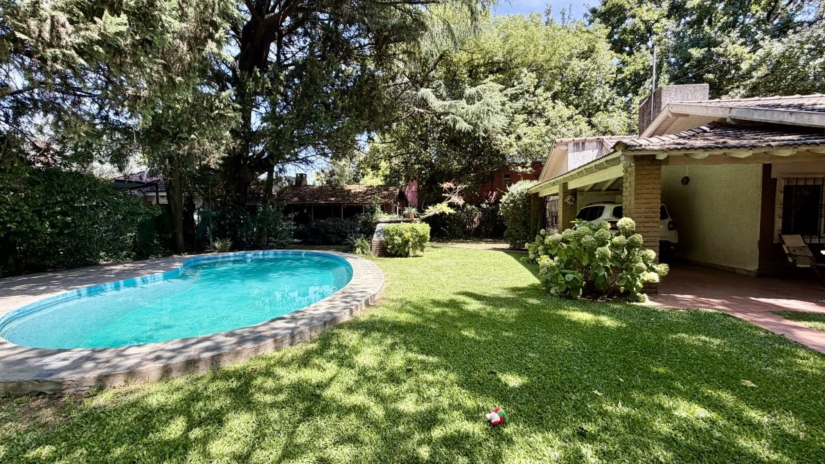 con piscina y un quincho cerrado totalmente equipado con cocina, perfecto para reuniones todo el año. Además, posee habitación de servicio independiente.