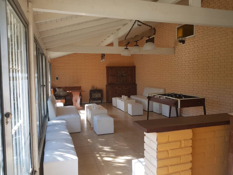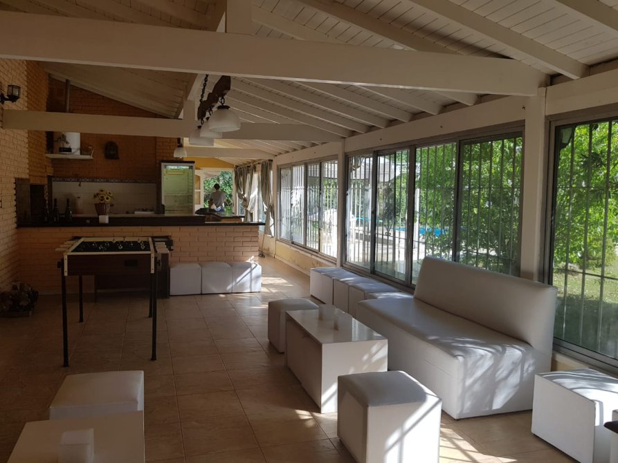 Amplio quincho cerrado con cocina, baño y sala de estar