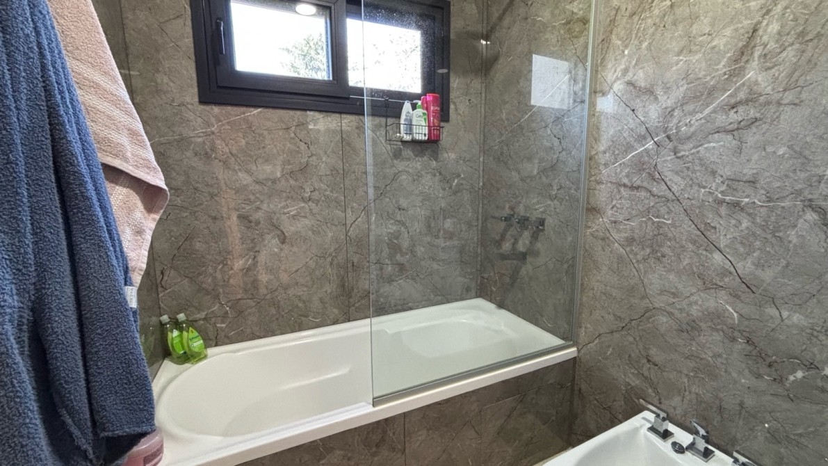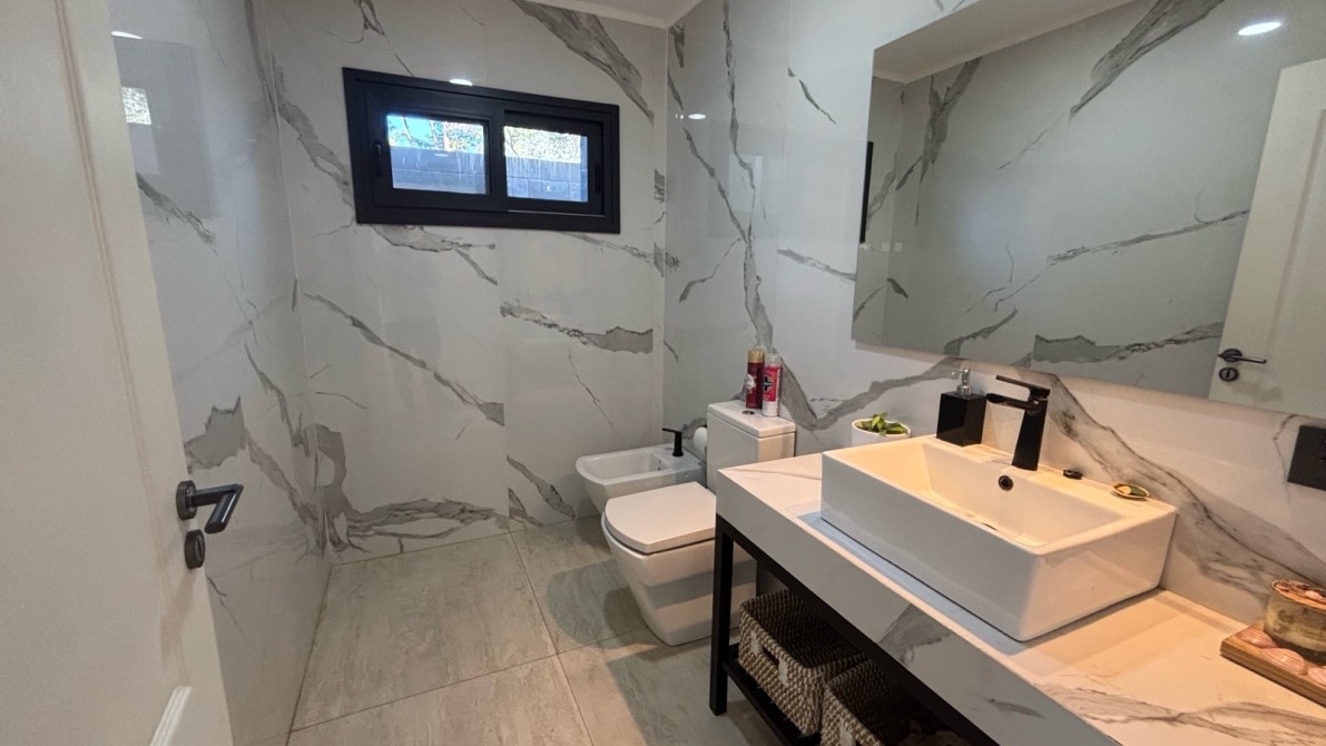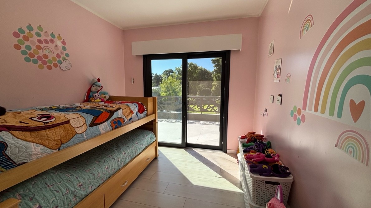 En planta alta se encuentra un gran playroom, tres dormitorios, uno de ellos en suite con vestidor, y un segundo baño completo. Los tres dormitorios tienen salida a una amplia terraza, aportando gran luminosidad y conexión con el entorno. Además, dispone de lavadero independiente en esta planta.